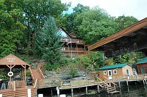 Secluded, nestled in a beautiful mature lot. Over 3000 SF tri-level contemporary home with fantastic views through custom picture windows. Spectacular views of Watkins Glen just four miles away for your entertainment. Plenty of tiered deck space with covered outdoor entertaining at every level with easy minimal stairs. Expansive permanent docks with covered boat hoist and boat house. Bring your vision for interior spaces because this property has the size necessary to make it your own. This home can easily be converted to a five bedroom 4 1/2 bath. This is a must see... simply too much to list