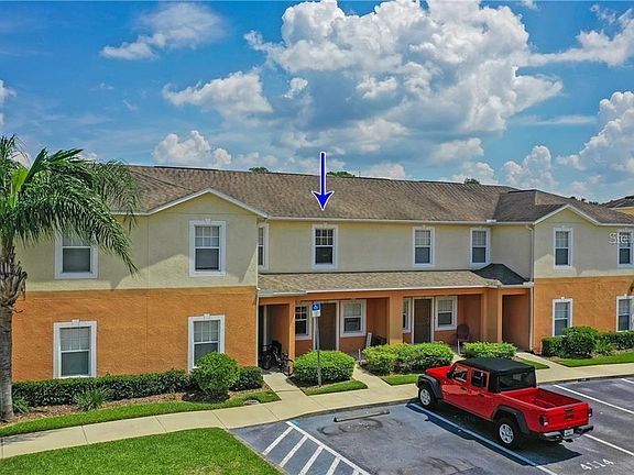 Location is perfect for easy access to the Polk Parkway (570). Freshly painted inside, new wood laminate floors downstairs, Open floor plan. Two bedrooms and two and half baths make this a comfy home. Maintenance Free adds to that comfy lifestyle. Living room dining room combo. Kitchen hosts ceramic tile and wood cabinets. Refrigerator, Range, Dishwasher, and Microwave all convey. Closet laundry off the kitchen making your chores easy and convenient. Sliding doors lead to a screened patio which has a storage closet. Hedge creates privacy in the back yard. Small front porch welcomes you to the two story unit. Community is gated and hosts a community pool and covered mailboxes.