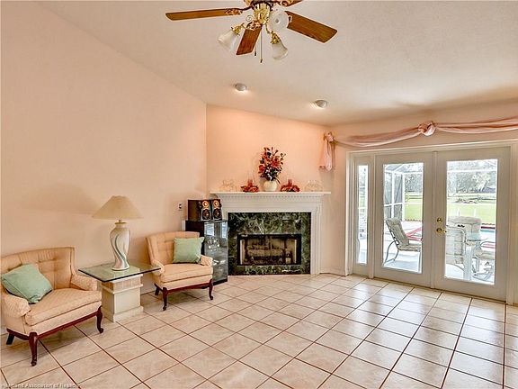 LOOKING FOR A POOL HOME ON ACREAGE? This open and spacious JJ Parker built 3/2/2 pool home is situated on 2.5 acres in a peaceful country setting! Step in the front door and you'll notice the soaring cathedrals and beautiful architectural arches gracing the formal dining room. Kitchen is inviting with its bright, white cabinetry & eat-at bar. Master suite is huge, including sitting room area overlooking the pool. Master bath boasts his 'n hers walk-in closets, double sinks and step-in shower. The home features tile floors throughout for easy maintenance including new wood-plank tile in kitchen and dining room. The lanai encloses a sparkling clean heated pool and every room of the house has doors that open directly onto it. The gas burning fireplace will chase away the winter chill and the whole house fan will help with energy efficiency. As well as the large garage, a separate 24' x 24' CBS detached garage is perfect for all your toys or a great workshop with electric included. Come and see your path to serene country living today!