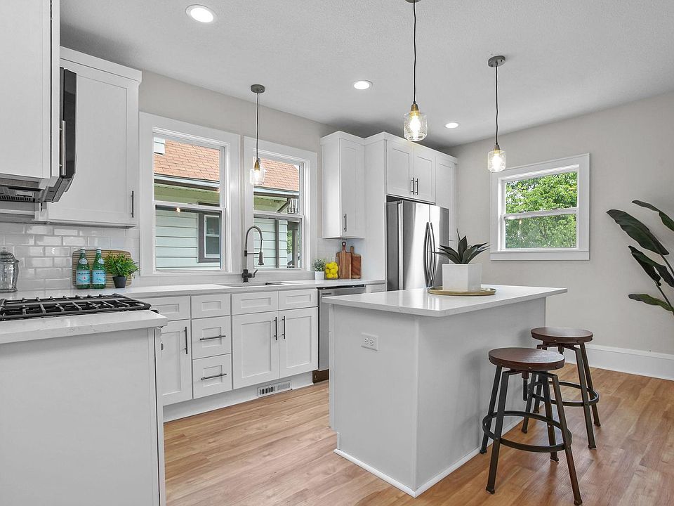 Complete remodel, 3bd/2bath in the heart of the Bancroft neighborhood of Minneapolis. Brand new quartz countertops, SS appliances, a beautiful island, large workstation sink and huge pantry! The kitchen opens to the large and open dining/living room space! The bright natural light from the picture window and 4-season sunroom creates a warm and welcoming space to host or relax with your friends or family. Brand new roof, high efficiency furnace, water heater, AC, windows, paint and flooring! New washer and dryer upstairs, as well as a quaint deck off the main bedroom! All new electrical, plumbing and HVAC! The basement is open for finishing with a walkout exit for potential Rental or AIRBNB w another 970 sq ft! (bathroom plumbing roughed in already) Come see for yourself!