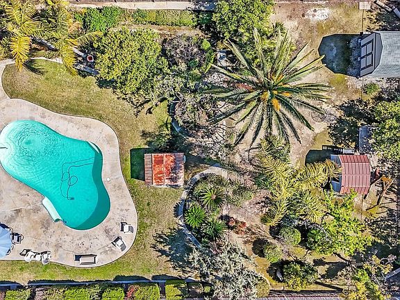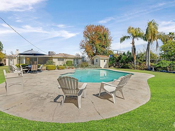 This beautiful home sits on a massive lot and is packed with upgrades, including a newer HVAC, roof, carpet, rain gutters, and dual-paned windows. The two spacious living areas are bathed in natural light, with one featuring a charming brick fireplace and elegant French doors leading to the backyard. The well-maintained kitchen offers ample storage and functionality, while each bedroom provides generous closet space, with the master suite offering direct access to the backyard. An indoor utility room with cabinet storage adds extra convenience. Step outside to your own private retreatfeaturing a recently resurfaced swimming pool with a newer pump, an outdoor restroom, RV parking with dump, multiple storage sheds, and a covered patio perfect for entertaining. With plenty of additional space to customize and bring your vision to life, this property is truly a rare find. Don't miss outschedule your private tour today and experience everything this incredible home has to offer!