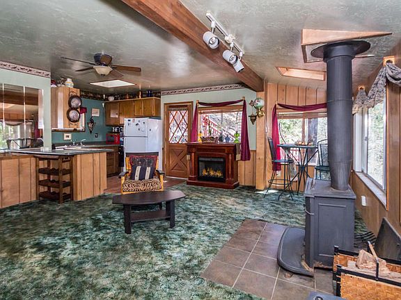 This charming cabin sits on just over 1 acre in the pines with beautiful long range views. There is a covered deck at the entrance and a large open deck to enjoy the fauna, flora and mountains. You are about 15 minutes from recreation at gorgeous Lynx Lake.If you are searching for a budget friendly, summer getaway, hurry, this could be the one!