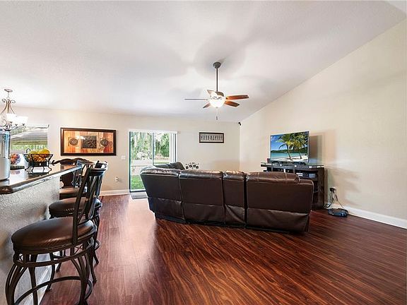 Beautifully landscaped, move in ready home for sale! Home offers 4 bedrooms and 2 bathrooms with 1,931 SqFt of living space and cathedral ceilings. Home is virtually brand new, built in 2013 by Southern Homes, Savannah model. Laminate wood flooring covers the home, with the exception of carpet in the bedrooms and tile in the bathrooms. The kitchen comes complete with a breakfast bar, granite counter tops, under mount sink and black appliances. The master bedroom is large with a walk in closet. The master bathroom has a large garden tub, a double vanity and a tiled stand up shower. There is a separate dining room and dinette. The backyard is fenced in and has large patio with a 2 Ft footer. 3M hurricane tint on all windows and slider. Ring camera doorbell, nest camera, nest thermostat and garage door has remote access via wifi. There is a separate laundry room and an extended 2 car garage with a built in tool bench. This home has an extended driveway for plenty of parking. The home sits on a quiet cul de sac with only 12 houses on the street.