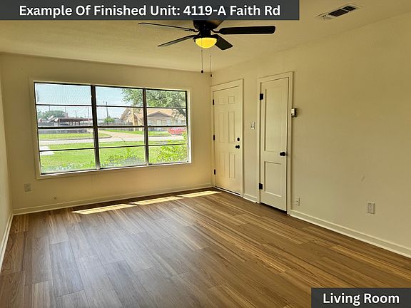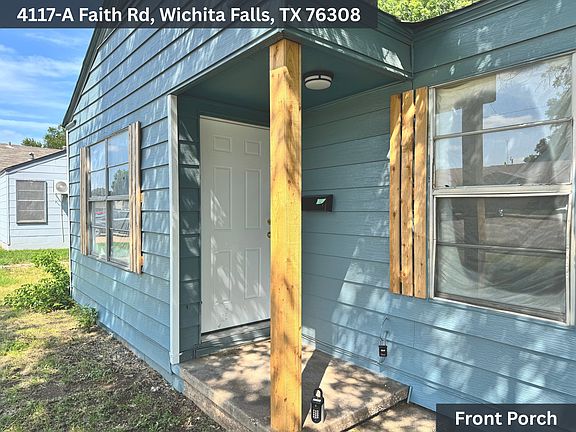 AVAILABE 7/1/2025 Fully Remodeled 2 Bed, 1 Bath Duplex Quiet & Central in Wichita Falls! Discover modern comfort at 4117 Faith Road Unit A, a beautifully remodeled 2 bedroom, 1 bathroom duplex in the heart of Wichita Falls. Nestled on a peaceful, quiet road, this home offers the perfect balance of tranquility and convenience, with easy access to everything Wichita Falls has to offershopping, dining, schools, and entertainment are just minutes away. Step inside to a bright, open layout featuring brand-new luxury vinyl plank flooring in the bedrooms and living areas, paired with sleek marble-look tile in the kitchen and bathroom. Freshly painted neutral walls create a welcoming atmosphere, ready for your personal touch. The modern kitchen boasts white cabinetry, stunning marble-like countertops, a matching backsplash, and comes equipped with a white refrigerator and stove. There is a new black stainless sink, and new modern hardware throughout. A large window with blinds fills the space with natural light, and the adjacent dining area provides easy outdoor access through a side door. Both bedrooms are spacious, offering large windows with blinds, generous closet storage with double doors, and ceiling fans with integrated lighting for year-round comfort. The fully renovated bathroom features a sleek tub/shower combo with a handheld showerhead, stylish wainscoting, built-in shelves, and modern black fixtures. Stay comfortable in any season with the central heating and cooling systema rare and valuable feature. Outside, enjoy a covered front porch and a giant owner-maintained yard, perfect for relaxation. The duplex's charming green siding and wooden shutters add curb appeal, while the quiet neighborhood ensures a serene living experience. Pets are welcome on a case-by-case basis with a $250 fee per pet, making this home ideal for everyone! Don't miss this opportunity to live in a fully updated duplex on a quiet road, yet central to all that Wichita Falls has to offer. Call us for more info today! Application required for anyone 18 years or older.
