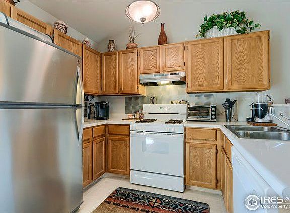 Don't miss this move-in ready, ranch style home in Wellington! Open and inviting floor plan with vaulted ceilings, all hard surface flooring, new stainless refrigerator, new front window, bathroom skylight, and a newer back deck made with reclaimed Tigerwood. This home has an attached 2-car garage, fenced back yard, and all the appliances stay. Brand new roof just installed. Nothing to do but move in! No HOA and easy main floor living. Don't miss it.
