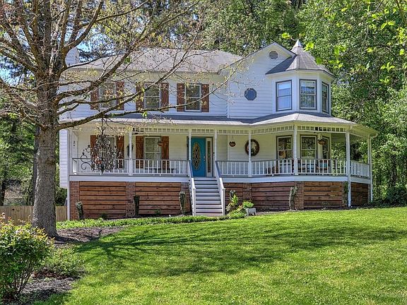 A swing sized wrap around porch on this Victorian cutie. Tucked away, this renovated home has all the charm while still having the access to major roads & EC schools. Oversized FR w/wood burning fireplace is ideal for gatherings. LR w/a custom window seat in the turret & shiplap detail wall w/wet bar. Spacious Kit w/granite, light cabinets, & SS app has quick access to the large DR & eat-in kitchen w/doors leading to the screened porch & deck. Movie room w/projector & screen wall. Master w/sitting area & shiplap wall detail surrounding the tub. 3 additional bedrooms up.