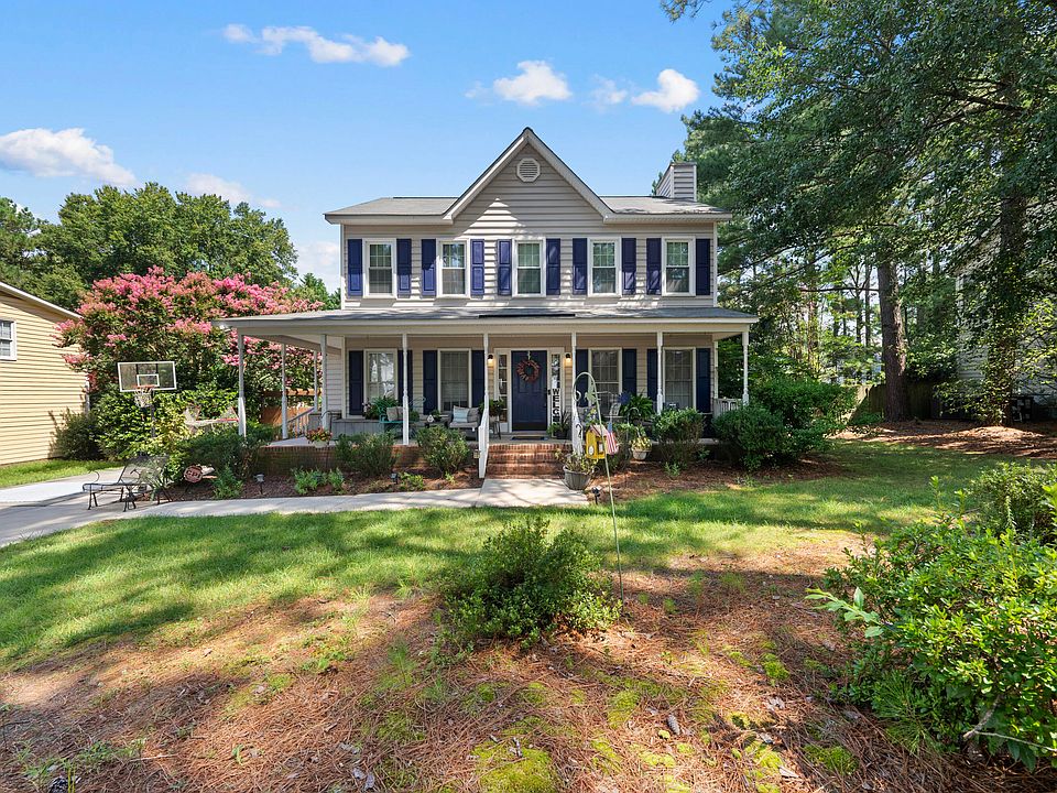 ** Seller is offering $1,000 towards buyers closing costs with signed contract by 8/31/2025** Charming 3-Bedroom Home in Forestville Farms Don't miss your chance to own this beautifully maintained 3-bed, 2.5-bath home! Ideally located with easy access to I-540, this home offers both comfort and convenience. Step inside to a spacious living room featuring a cozy fireplace—perfect for relaxing or entertaining. The home also boasts an eat-in kitchen and a separate dining room, offering plenty of space for family meals and gatherings. Upstairs, you'll find three bedrooms and two full bathrooms. You'll fall in love with the expansive front porch, ideal for morning coffee or evening chats. The fully fenced backyard includes a large deck, a patio for outdoor dining, and a powered storage shed—great for a workshop or extra storage. Additional highlights include dual-zone AC, a vapor barrier beneath the home, and several new windows.