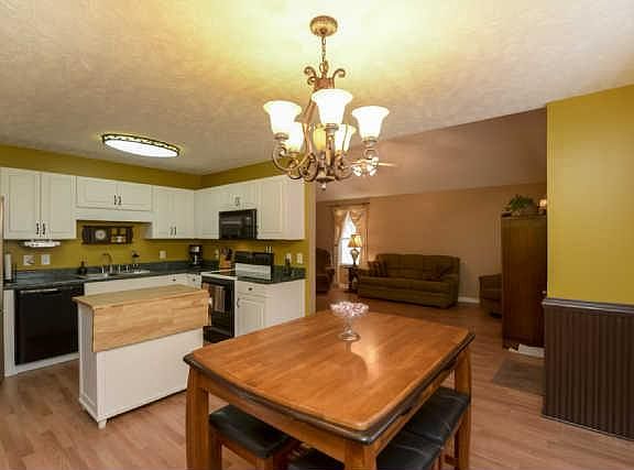 Lots of extras! 12x10 Deck with Extra 16x16 Deck with 10x4 addition for grill/kitchen with awning that stays. Great view! Perfect for entertaining. Island in Kitchen stays. Storage building stays! Fenced in back yard. Garage is heated & cooled.