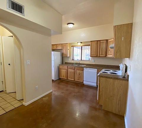 AVAILABLE DECEMBER 1st! Centrally located two bedroom, two bathroom townhome. Boasting a bright and open floor plan with beautiful stained concrete floors and a unique bee hive fireplace. Spacious eat-in kitchen with an abundance of kitchen cabinets. Additional features to include a carport, washer/dryer, ceiling fans and painted sink basins. Enjoy the small fenced-in patio yard and sparkling community pool. A short distance to the University of Arizona, Rillito park, Tucson Mall and Historic 4th Ave. Security Deposit is equal to one month's rent. Pets upon Owner approval with $200 non-refundable pet fee. NO ZILLOW APPLICATIONS ACCEPTED AND MUST VIEW BEFORE APPLYING. $40 application fee per adult 18 years or older. DO NOT DISTURB TENANTS. Contact us to schedule a showing.