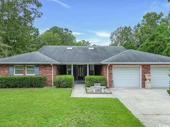 Welcome home! This 3 bedroom, 2 ½ bath rancher with a den and built-in pool has so much to offer. You cannot go wrong with this well-maintained 2093 sq. ft. home with five skylights to add additional natural sunlight to the already bright interior. Large windows throughout create a bright and inviting ambiance throughout the home. As you enter the home, you'll be greeted with a spacious living area with soaring ceilings, a skylight, and large windows that let in all that natural light. The kitchen and dining room combo with a wet-bar provide an inviting area for family gatherings. The kitchen area has beautiful wood cabinetry, tile backsplash, triple stainless sink, tile flooring, and pass-through to the formal dining area. The dining room features tiled flooring, large windows and a ceiling fan adjacent to the wet-bar. Adjacent to the Kitchen/Dining Area is the Laundry/Utility Room leading to the attached 2-car Garage offers room for storage. There is plenty of offroad parking for guests or a growing family with room for four vehicles in the driveway. The master suite features a separate shower and toilet with skylight, recessed single vanity with large mirror, and large linen closet discreetly hidden behind the bedroom door, large walk-in closet with built-in shelving in fully carpeted room with large windows and ceiling fan. The two additional bedrooms are spacious and well-appointed, each featuring ample closet space and large windows that let in plenty of natural light. There is a full bath with single vanity, tub/shower combo, with tile floors. The den, with tiled floors and full-length windows, offers a private sanctuary that sits just outside the Master Ensuite that can serve as an office, secondary family room, or your own piece of paradise as you choose. Open the door and step outside to your private outdoor oasis featuring a sun-soaked deck, and a beautiful backyard. Outside, you'll find a landscaped backyard with a concrete patio/deck for minimal maintenance, perfect for outdoor dining and entertaining. The large in-ground deep salt-water pool grades from 4-feet to 9-feet, built in 1999 has been well maintained and it shows. The deep blues and crystal-clear water draw you in. The pool is surrounded by an oasis of natural landscaping and hand selected décor to convey with sale. Exterior sheds provide ample storage space. All brick siding is easy maintenance and there is an expansive deck out back with great possibilities for outdoor living. Out front, you can enjoy the quiet sounds of nature around you from the spacious porch, while in the back there is a spacious deck perfect for hosting get-togethers or simply enjoying the beautifully landscaped, fenced-in backyard. This quiet little neighborhood has NO HOA and is convenient to everything in Little River with the beach just ten minutes away. With a fenced in yard, amazing pool, and large patio, this home is perfect for relaxing or entertaining. You’re just minutes from golf courses, shopping, restaurants, medical care, and so much more. Schedule your tour of 4117 Schoolhouse Lane TODAY!! It could be your forever home.