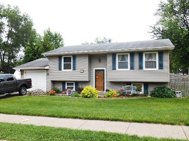 Great home on large corner lot with many exciting features! Spacious Living Room with newer windows and flooring. Roomy kitchen that has walk-out to nice large deck. Home has newer vinyl siding and other great features such as basement entrance from the garage, large recreational room in finished basement, beautiful landscaped yard and added extra parking slab in and outside of fenced yard.