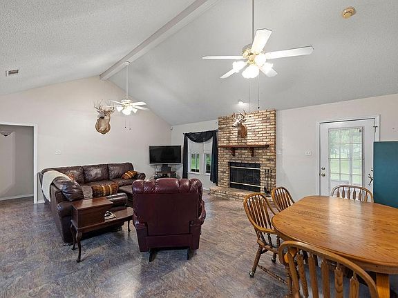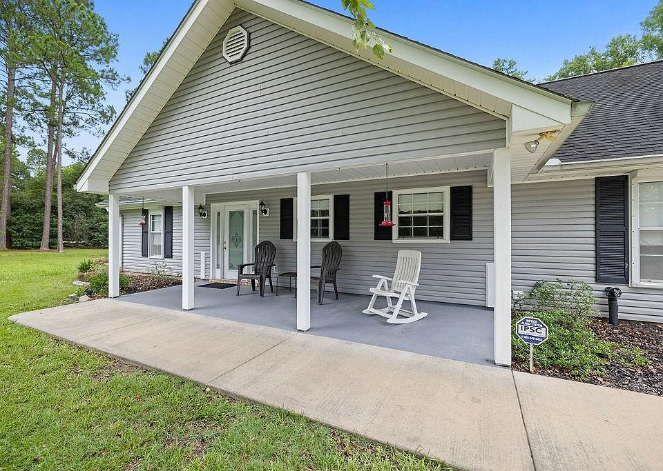 Country charm with the conveniences of the city! Situated on an expansive 3.8 acre corner lot, this house has so much to offer! Gated entry at either end of the circle driveway leads you right past the pond and up to the front porch. The home boasts cathedral ceilings in the living area, a wood burning fireplace and stainless steel appliances in the kitchen. Each wing of the house has a large bedroom with a full bathroom. The screened in back porch is the perfect spot for relaxing! There is ample parking and storage, including a detached garage and metal carport.