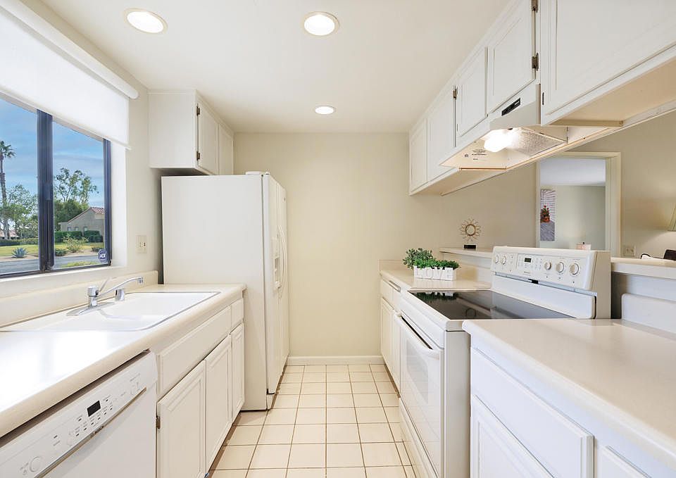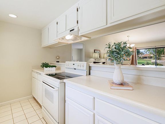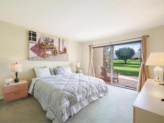 Idyllic location with unlimited views across the greenbelt with the golf course fairways to the west and a landscaped parklet just across the street to the east. Perfect personal use condo and/or a money maker with short term rentals allowed. Beautifully landscaped pool is just steps from the tiled back patio. This perfectly situated condo is among the largest 2 bedroom, 2 bath floor plans in the Palm Desert Resorter community. The large back patio offers an expansive space to lounge in the sun while enjoying the refreshment of your choice and is just steps from one of the 20 community pools and spas. Inside, the two ensuite bedrooms, located on opposite sides of the living area, provide space and privacy for your and your guests. Both bedrooms and living area have sliding doors to the back patio. The washer and dryer are conveniently located indoors. The active Palm Desert Resort Country Club, open to the public with a variety of membership options, boasts a 72 par championship golf course, 42 pickleball courts, 7 tennis courts, and restaurant. Located mid-valley, close to retail and superb dining establishments with easy access to I-10. For more country club information, please see https://theresorter.com.