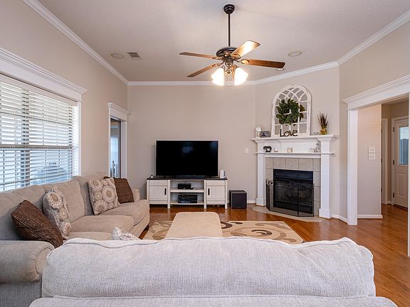 Cute one level home in Emerald Valley. *New deck being completed this week* This home has a great floorplan. The kitchen is open to the large living room with an island that allows for bar seating, lots of natural light, beautiful hardwoods & gas log fireplace in the living room. The primary bedroom is generously sized with a en- suite bathroom complete with aa jacuzzi tub, walk in shower, double sinks and 2 walk in closets. The other 2 bedrooms are on the other side of the house and both have walk in closets. Backyard has a nice, covered back porch with a storage closet, and deck. New paint in 2022, newer wood floors & carpet. Surround sound in the living room, garage has a workshop space. *Agents See Remarks*