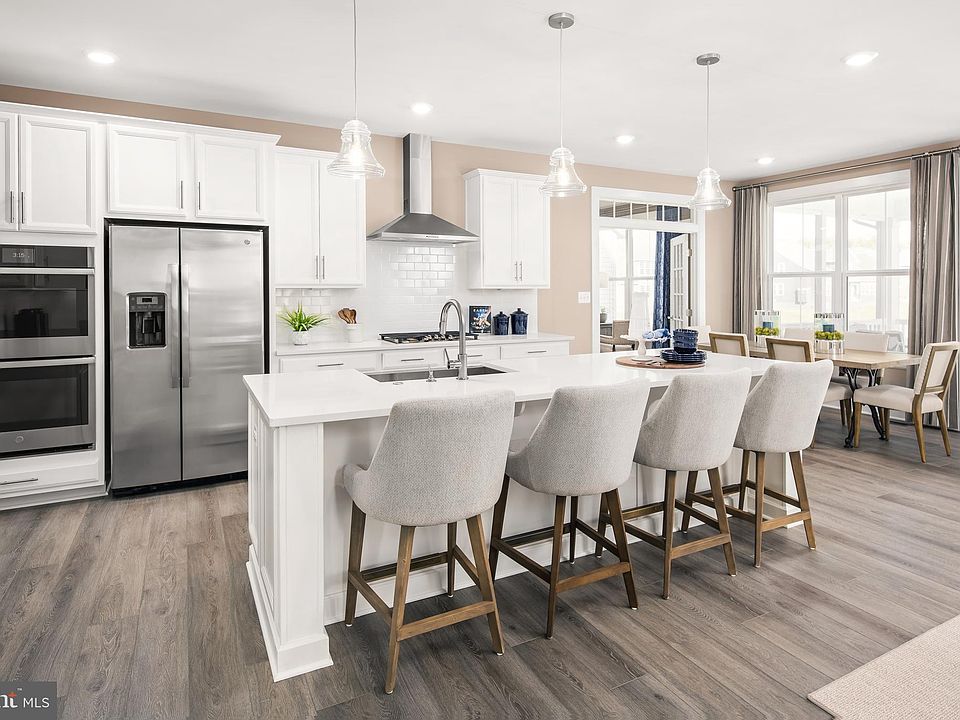 NVHomes at Westmount: Ellicott City's premiere estate community. with an AUGUST Move-IN, this Liberty home is sited on a corner homesite and features 5 bedrooms, 4.5 baths, includes high end finishes, a brick front, finished basement, chef's kitchen, LVP throughout the first floor. Inside, the main level presents endless opportunities for entertaining with a gourmet kitchen island open to the large family room with a cozy gas fireplace. An arrival center off the 2-car garage offers convenience. Use the flex room however you like. Upstairs, a luxury owner's suite features a spa-like bath and 2 walk-in closets. $25,000 in closing assistance using NVR Mortgage. Photos for viewing only - taken at a finished model. Location Model: 3700 Three Graces Road EC, 21042. New hours Mon-Sat 10-5 and Sun 11-5.
