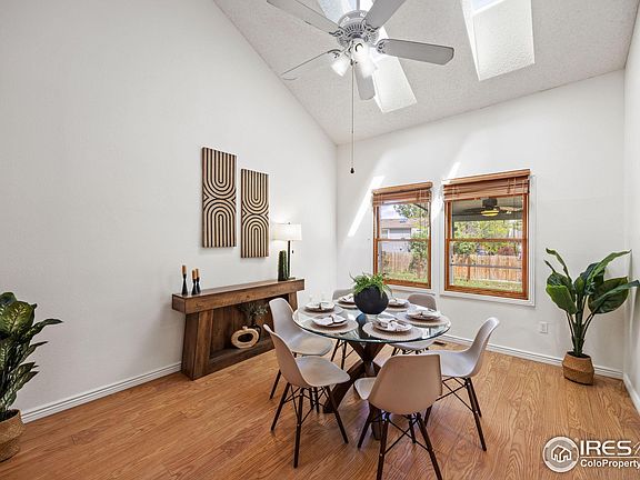 Nestled on a quiet cul-de-sac in desirable Fort Collins, this spacious single-family home sits on a large fenced lot. Enjoy open-concept living with high vaulted ceilings, an updated kitchen, and a massive family room addition perfect for entertaining. The main floor primary suite offers convenience and comfort, while the finished basement provides additional living space. Skylights flood the home with natural light, and multiple covered back patios invite outdoor relaxation. Recent upgrades include newer exterior paint and A/C. No HOA. This isn't a cookie cutter home...this one combines style, space, and serenity-don't miss it!