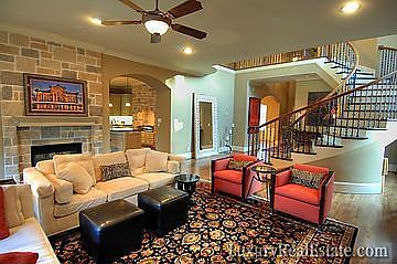 This stunning Ayrshire Estate was built in 2007. The elegant entry showcases a spiral staircase with wrought iron railings. In the formal living room a 2-sided stone fireplace separates the formal living area from the gourmet kitchen and morning room. The kitchen offers professional grade Viking appliances that include a 47 refrigerator, a wine refrigerator and an icemaker. The morning room leads out to a covered porch and summer kitchen. The large master suite opens to a private balcony that overlooks the magnificent oak tree in the landscaped back yard. A spectacular master bath boasts his/her closets, a jacuzzi tub, a frameless glass shower and much more. All of the custom finishes and elegant touches make this home your personal great escape.