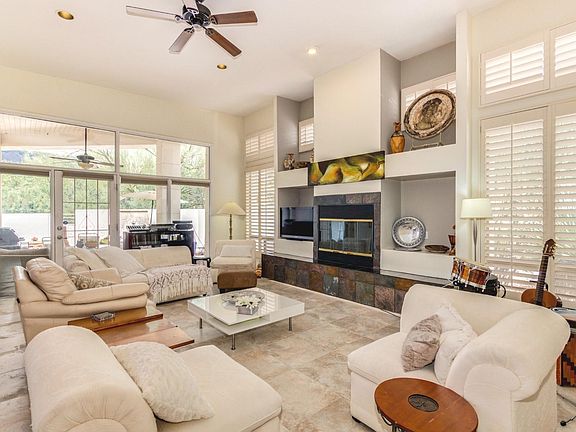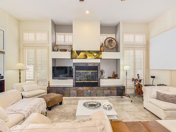 Stunning contemporary 3 bedrooms, 3 baths, 2,100 sqft of living space. Be delighted with soaring ceilings, picture windows ,lots of natural light, plantation shutters, wood-burning fireplace in spacious family room, tile flooring throughout! Modern styled kitchen boasts polished custom granite counter-tops, eye catching tile backslash, sleek Italian white cabinets, SS appliances, under cabinet lighting. Formal dining room with elegant chandelier, Peaceful master with wood-burning fireplace, book case built-ins, private en-suite, with double sinks, soaking tub with jets, and private toilet room, laundry room with built-in cabinets and utility sink.Water softener .Low maintenance backyard hosts covered patio,catera fountain and gorgeous mountain views! OPEN HOUSE SUNDAY SEPT 29th 11AM-2PM