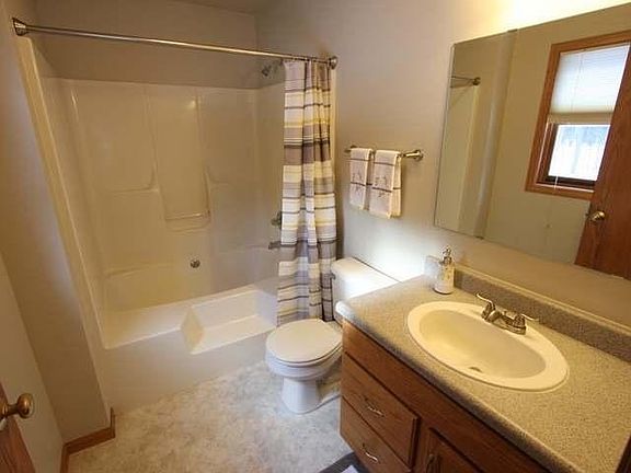 Located on a semi-private, wooded lot close to town, this 3 bedroom, 2 bath home offers fresh updating and room to grow! This home offers an open concept living area, kitchen with granite countertops and stainless steel appliances, master suite, main level laundry and unfinished basement with walkout access. There is a 2 car garage, blacktop drive, and large yard with children's playhouse.