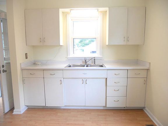 This all-brick ranch on a large lot is in move-in ready condition and waiting for you. The two-bedroom home offers many desirable features such as beautiful hardwood floors, replacement windows and natural stain trim. The bright and cheerful eat-in kitchen showcases vintage metal cabinets, a gas stove (to remain) and washer/dryer hookups. There is a garage with an attached carport plus a bonus 0.114 acre partially fenced lot behind the home which offers great possibilities. The street does not cut through so there is less traffic and the location is conveniently located near Iroquois Park and the Watterson Expressway. Call today to schedule your private tour.