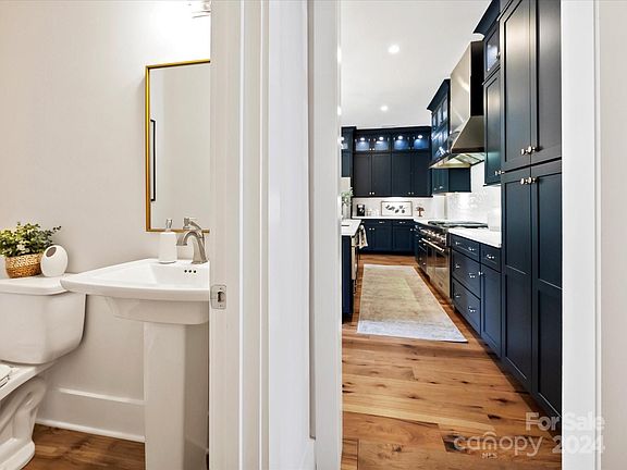 kitchen/living/dining space w/ 10' ceilings and floor to ceiling perimeter kitchen cabinetry. This 3-story/basement home features an elevator, gas fireplace w/ pre-cast concrete surround, 7" pre-finished hardwoods throughout, gourmet kitchen w/ Thermador appliances, Cabinetry in blue "Nightfall", Calcutta Gold Suede quartz counters, basement wet bar, and a brick-surround outdoor fireplace. 3rd floor is a flex space w/ many uses: second living area, office, or amazing storage.