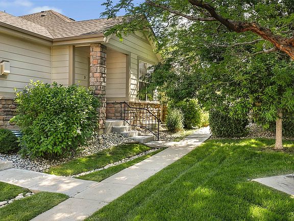 You'll love this updated corner lot ranch-style condo nestled in a quiet cul-de-sac street just a couple blocks from Cherry Creek State Park! The floor plan is an entertainer's dream - the living room, dining room, and kitchen with high 9' ceilings are all interconnected, creating a true open-concept entertainment space. The bright and cheery kitchen has updated stainless appliances, 42" cabinets, and plenty of storage. Convenient in-unit washer and dryer are included and tucked away in a closet just a few short steps from the bedrooms. A spacious master bedroom has vaulted ceilings and an en-suite 5-piece bath with jetted spa tub. The second bedroom could easily become a home office or gym. A full unfinished basement with egress windows makes for endless storage or finish it off for additional living space. A wonderful location that's walking distance to many shops and restaurants, quick access to I-225 and I-25, and zoned for award-winning Cherry Creek Schools.