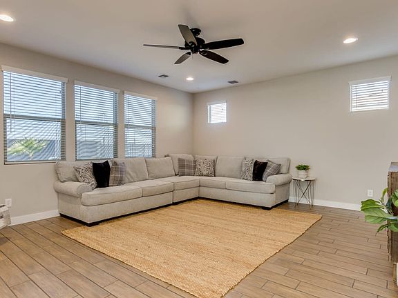 This newly built home is located in the desirable Eastmark community which is filled with great amenities including parks, pools, restaurants and more. The home was completed in May 2020 and includes amazing upgrades including kitchen cabinetry, lighting, fixtures, flooring, counters, appliances and an 8ft quarts extension in the kitchen. Upgrades continue outside the home with a professionally designed backyard that includes palm trees, upgraded turf and more.