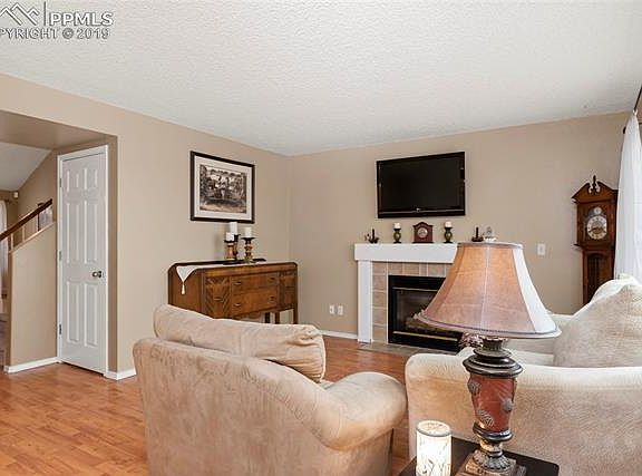 Look no further than this beautiful 2 story. This 3 bdrm, 3 bath home shows like a model home! Open floor plan, wood floors, vaulted ceilings and warm paint creates a warm welcoming atmosphere as you enter the home. Spacious family room with gas fireplace opens to the kitchen/dining with plenty of white shaker cabinets, island and large pantry. Walkout to the NEW trex deck with decorative night lighting and fully fenced backyard is perfect for entertaining and vews of Pikes Peak!! Upstairs you will find the spacious Master ensuite with vaulted ceilings, gas fireplace and attached 5 piece master bath with heated travertine floors, double granite vanities, beautiful tile accents, large soaking tub and separate shower! 2 additional generous bedrooms and updated full bath complete the upstairs. Partially completed basement includes space for 2 additional bedrooms. Oversized 2.5 garage! NEW Roof 2018. Your dream home awaits, come see it today!
