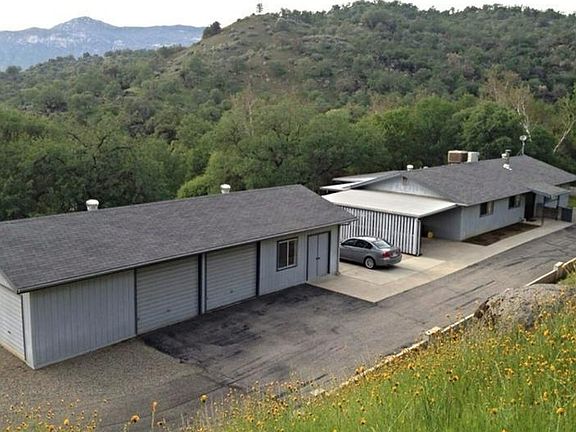 Beautiful country home nestled in the foothills of the Sequoia Mountains. This home is down a 1 mile country lane, gorgeous views everywhere you look. Home sits on just under 5 acres. Custom built home & is occupied by original owners. (Blue prints available) 3 bedroom 1 1/2 bath, open floor plan with a covered patio overlooking the beautiful views. This property has 4 nicely fenced off areas for horses, goats.. ect. 3 out of the 4 areas include animal shelter/sheds. Covered carport, 2 car garage (9ft height- designed for RV parking) Plus a 20x20 BONUS room completely finished, additional 12x20 shop/storage area, it's wired for 220V 500 amp panel. The well pumps 25 gal per min with a 60-70 gal recovery rate per min. This home has been kept maintained very well. Circle paved driveway that takes you throughout property. Make an appt to see this home today.