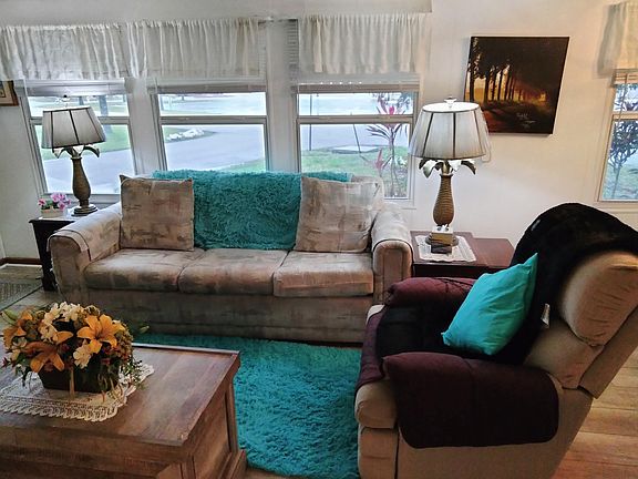 Mobile home very nice well kept 55+ community. Fully furnished turn key. House has 2 bedrooms 1 1/2 bath. Living room and dinning room combined office space very large Lanai screened on a large corner lot Property runs on rt 301 with bus run to shopping area. Community has pool, community room with many activities. Shuffle board, botchi ball, library, and many social activities. Owner pays for land fees, taxes, and water. Tenant pays electric. No pets allowed. Absolutely no smoking Lease is for 6 months with option for renewal. Additional guests staying over two weeks will cause increase of water. bill anything over $70.00 will be paid or deducted from security deposit. Property is to be kept in clean well cared for condition as received. Must prove age to the Tide View Estate ( 55+ only community) and animal support papers if approved by landlord. Landlord is allowed to enter premise after 24 hour notice no refusal is allowed for inspection once a every other month.
