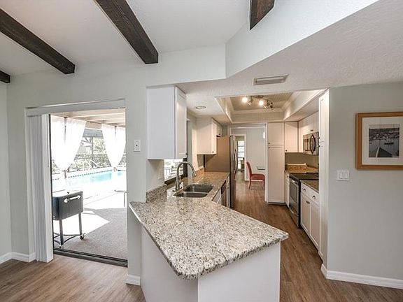 Location! Location! Location! Tastefully and completely Remodeled, Mid-Century Modern Architecture meets Beachy Ranch Cottage in the Highly Desirable Center Gate Community, minutes from the Gorgeous Siesta Key Shores and the European-Inspired Downtown Sarasota with Luxury Boutiques, Art Galleries, Unique Restaurants and World-Class Entertainment Venues to your Hearts' Desires. This Cozy and Spacious 3 Bedroom, 2 Bath, 2 Car Garage Split Design, Open Floor Plan Single Family Home boasts Exposed Genuine Wood Beams adorning its Vaulted Ceilings. Brand New Floors throughout and a Wood Burning Fire Place create a Pleasant Ambiance. Brand New Kitchen with Stainless Steel Appliances, White Shaker Cabinetry and Granite Counter-tops await your Gourmet Culinary Inventions. This Urban Oasis is Freshly painted in Soft Coastal Hues Inside and Outside to Soothe your Soul. An Over-sized Covered Lanai with Exposed Wood Beams and Planks and Soft White Curtains overlook a Large Sparkling Blue Pool so your Zen Indoor-Outdoor Florida Life "Can't Get Better Than This"! Turn-Key and Impeccable! Move right in, Relax and Enjoy the Quiet Quaint Neighborhood while Watching the Palm Fronds Dance with the Gentle Sea Breeze Blowing East in your East/West Lanai extending to your Lush Sunny Backyard. Be it a family home, vacation home or a retirement home, this Tropical Beauty offers a Care-Free, Easy Living with Walk-In and Cedar Closets, Plenty of Room for Entertainment, Quick Access to I-75 and Gulf Beaches! The Gem of Center Gate!