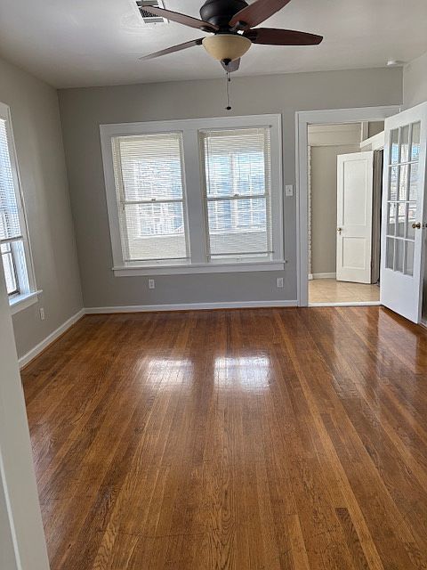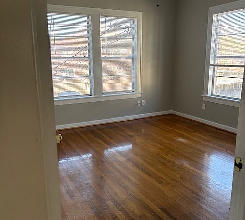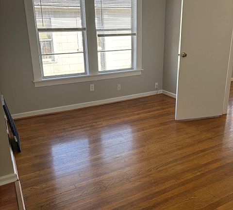Tastefully painted (light gray with white trim) beautiful floors, gas range, refrigerator, central heat and air, ceiling fans, mini blinds, galley kitchen and nice amount of closet space in the unit. Property is just a short distance from downtown and convenient to many venues. Also, there is another room that may be used as a reading /computer room which has many windows overlooking the street. Tenant pays gas, electricity and a portion of the water bill each month.