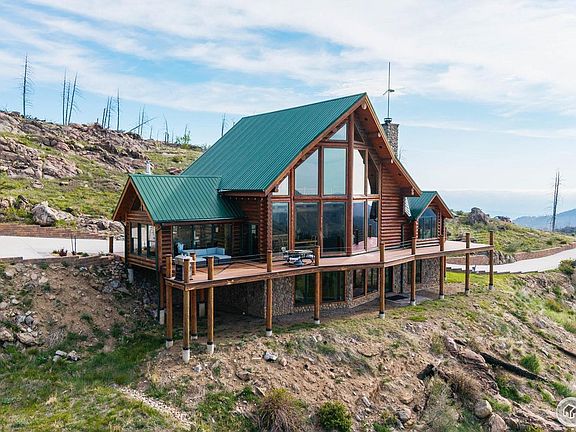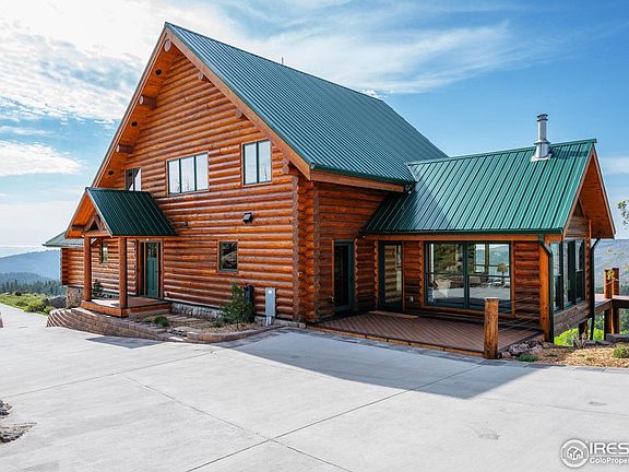 Luxury meets elegance in this stunning log home made of Premium Douglas Fir logs. Thoughtfully crafted where no detail was left out. From the moment you arrive, the concrete driveway, finished with well placed brick wall, takes advantage of the natural rocks, and sets the scene for inside. Enter through a 3 season sunroom, your next vision will be the elegant living room where you are immediately inspired with the magnificient views through floor to ceiling windows. Walk out on a wrap around Trex deck and be amazed at the vistas of the rear of Horsetooth, into Redstone Canyon, all the way to Loveland. To the southwest the top of Longs Peak greets you. As you relax with your evening beverage watch the deer and other wildlife saunter by. Join us back in the expansive living room that keeps you warm w/the high-efficiency Renaissance Rumford wood fireplace. The gourmet kitchen features a Wolf steamer, and Wolf propane stove/oven w/custom river-rock exhaust hood, gorgeous alder cabinets, and plenty of counter space for you to create your latest culinary delights on granite counters and butcher block style island. Your primary bedroom brings the outdoors in with soaring vistas. French doors lead you to your private deck for morning coffee. His and Hers closets. Upper floor offers flex space for playtime, pool table, or theater room. Note the lighting along the logs in the ceiling. Walk-out basement has 3 beautifully finished bedrooms, and large bathroom w/double sinks. Hidden away is your wine cellar/cold storage, it remains at an ideal temperature. Your 5.6kW solar system results in avg $150/year back to you. A finished 1380 sq ft 6-car garage w/3 overhead doors, large windows, 50-amp power outlet for EV or RV. Come see this extraordinary quiet retreat, on 40 acres where you'll feel so comfortable you won't want to leave. In LaPorte, you'll find groceries, cozy coffee shop, 4 restaurants, hardware store and gas station. Only 25 minutes to Old Town Ft Collins.