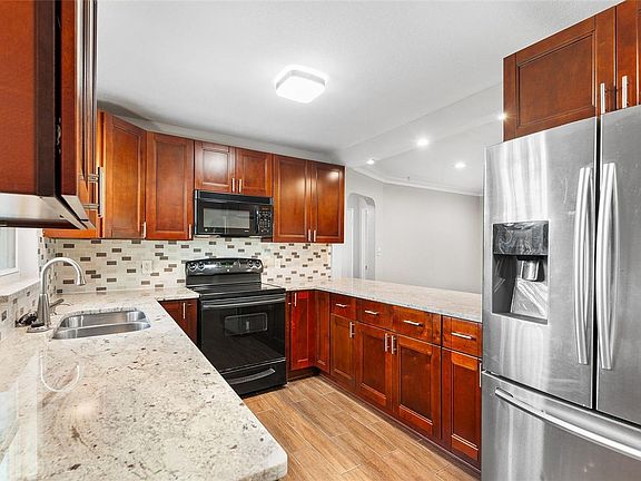 Sleek granite countertopsSplit-concept layoutUpdated kitchen