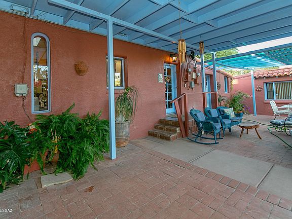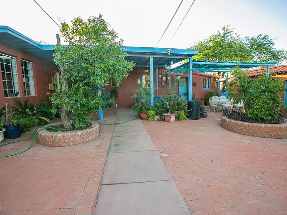 8 garden units surrounding, a sparkling pool, on approximately one acre. Property consists of a 3 bd 2. ba house, a 2 bd 2 ba house, one 2 bd. 1 ba, unit, two 1 bd. units and 3 studios. Solid adobe construction reminiscent of the Arizona Inn.This charming compound is walled- in, contiguous to R3 and C2 zoned parcels, on 3 sides. Lushly landscaped grounds with multiple patios. 6 gas and electric meters, 1 water meter. Family has owned for 48 years and currently occupies property, but all units are rent ready.