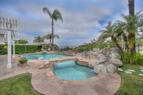 Which Do You Want More - Spacious Indoor Living Or A Stunning Pool? Why Choose, Have Them Both When You Move Into This Coveted Belmont Estates Home. This spacious 5 bedroom, 3.5 bathroom home features a downstairs en suite, vaulted ceilings, 3 car attached garage and so much more. When you take your first steps into the home you are greeted by travertine floors in the entry way, soaring ceilings, a step down living room with fireplace. The formal dining room has french doors that lead out to the relaxing pool & spa. The kitchen features granite counters, a 6 burner gas cook top, double convection over, a walk-in pantry, a breakfast nook and is open to the family room. The family room is home to a built-in bar, wood floors, another fireplace and french doors to the pool area. The downstairs en suite features new carpet, mirrored closet doors and a walk-in shower. There is another half bath downstairs and a laundry room with a sink. Upstairs features an expansive master suite with vaulted ceilings and the third fireplace in the home. The bathroom has dual sinks, a soaker tub and shower. The walk-in closet has built-ins to help keep everything organized. Down the hall are 3 other bedrooms that share a bathroom with dual sinks. One of the bedrooms is over-sized and could be used as a game/media room. All of the upstairs bedrooms feature vaulted ceilings, crown molding, baseboards & new carpet. Some other features the home boasts are dual AC units, shutters, 6 panel doors, recessed lighting and most importantly pride of ownership. The relaxing back yard features a pool & spa with a newer energy efficient multi level pool pump. There is also a built-in BBQ with sink perfect for family gatherings. Don't miss your opportunity to purchase this amazing home. Call to schedule a private showing now.