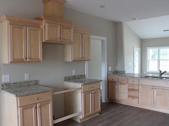 This beautiful Hemlock Alt plan is on .91 acres of land in a non-HOA area. The open floor plan has 3 bedrooms and 2 bathrooms which are split for privacy. Relaxing 18' front porch, formal entry foyer, spacious living room with high vaulted ceiling with ceiling fan offers a beautiful wall of windows with the center being a sliding door out to the enlarged 36'8" x 10' patio. Adjacent to the living room is a large screened porch with a ceiling fan. Kitchen has custom solid wood cabinets with crown molding and knobs, under cabinet LED lighting, granite counters, stainless steel appliances with the microwave vented to the outside. There is a large walk-in pantry and a counter height breakfast bar. The dining area is on the front side of the kitchen and has a tray ceiling with light and a double window overlooking the front yard. Two spacious guest bedrooms and full bathroom with a 5' shower are located on the opposite side of house. Large 20' x 22' garage is finished and painted with automatic door opener and pull down stairs to attic storage above. A mop sink and side entry service door have been added. Luxury vinyl plank flooring is thru-out the home. An additional interior outlet and exterior flood light has been added. Smooth ceilings, RB3 window and door casings, 5 1/4" baseboards, sodded and landscaped yard with irrigation system, gutters, coach lights at the garage, shutters and 30 year architectural shingles. video is for illustrative purposes only and may be of similar house built elsewhere. Square footage is approximate and not guaranteed. Buyer is responsible for verification.