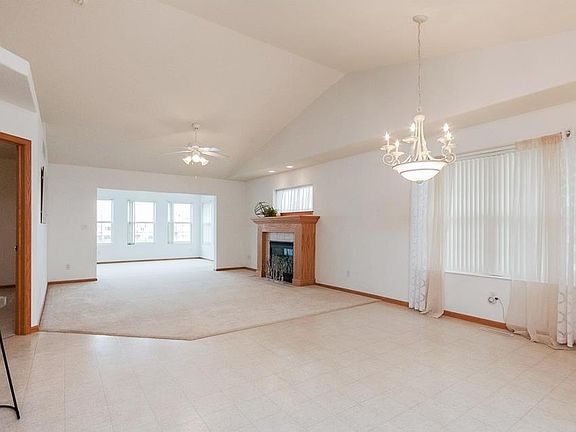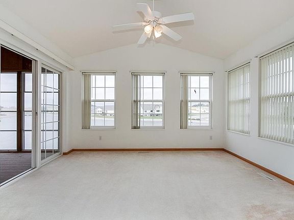 Offer pending contingencies. Inspiring lakeside views from this spacious end unit - 4 bedroom 2.5 bath ranch home. This popular expanded and open floor plan is on the lake and features private lake views from the expanded sunroom, the 3 seasons screened porch and from the master bedroom. Multiple vaulted ceilings for a more spacious feel along with inspiring views of water, geese and walking path. All appliances including main level washer and dryer. Master boasts a walk in closet, long vanity with dual sinks, walk in shower & vaulted ceiling with views. Large eating area, room for buffet or legacy dinning room set. Breakfast bar, and kitchen open to main area so you don't miss a thing. Cozy gas fireplace where you can snuggle up with a good book. Finished, walk out lower level ideal for access to yard for guests and pets, allows lots of natural light to shine in, too! Guest suite with full JacknJill bath. Plenty of space 4 bedroom or 3 and an office. Pets welcome.