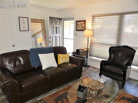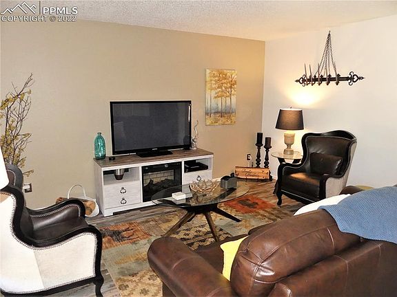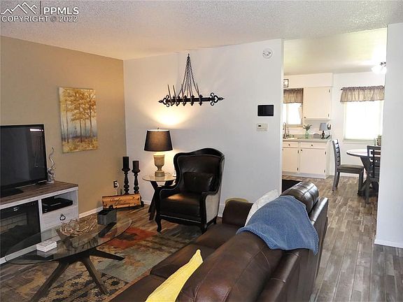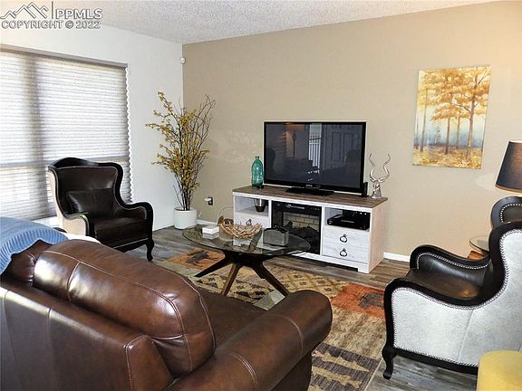 Lovingly maintained and move-in ready! This 4 bed/2 bath tri-level is a catch! Updated vinyl flooring, updated bathrooms and convenient floorplan. The level backyard features an extended patio and adorable gazebo. Enjoy those mountain views and warm summer evenings! Lot backs up to a city park so your views will never be obstructed. Backyard storage shed. Conveniently located near retail and restaurants. Easy access to Academy Blvd, Peterson AFB and Ft. Carson. Move in and enjoy!