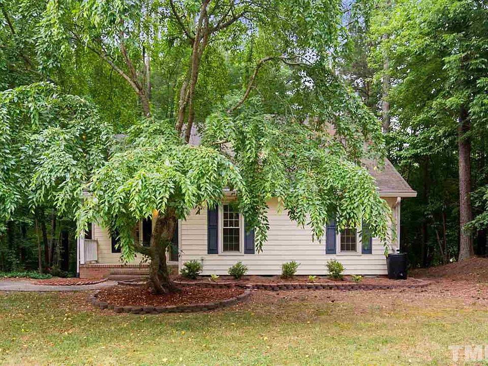 Built in 1988, this Dunham one-story corner lot home offers a covered front porch, hardwood flooring, a wood-burning fireplace, and a back deck.