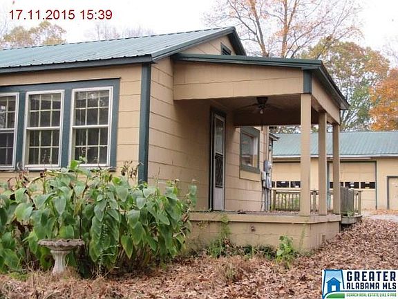 Frame exterior, metal roof, covered porch, detached three car garage, kitchen with stove, ref, living room with hardwood flooring, two bed room and full bath.