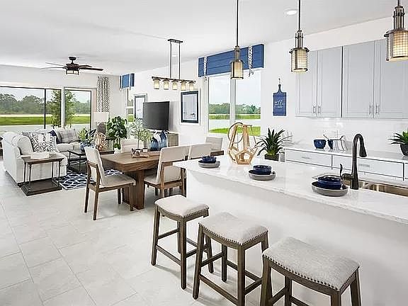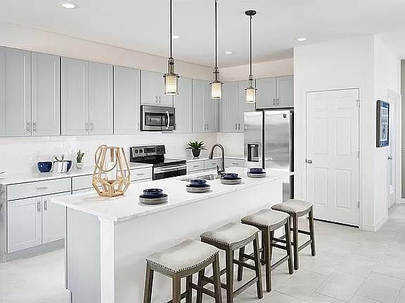 Address : 4114 Solamor st, Lakeland ,FL 33810 (Gated) Energy efficient(All new appliances included) new construction paired villa located at TerraLargo . The Bay floor plan features bricked paved driveway, leadwalk, entry and 3 bedrooms, 2 baths with a 2-car garage. 9'4 ceilings throughout. You will find the foyer, 2nd bath and open kitchen/dining room / gathering room combo. From the gathering room, sliding doors leading you to the covered lanai. The community is surrounded by walking trails. Enjoy the resort style community pool, game room, club house, children's' play area, tennis court, basketball court and top of the line fitness center. Conveniently located only a few miles from I-4 and HWY-98 allows for effortless commute times to either Tampa or Orlando.(Images of the same floor plan model home.) Brand New House (Villa) in Terra Largo
