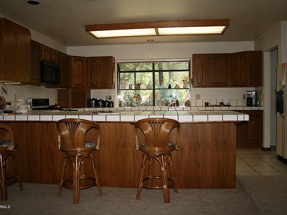 See the beauty of this 1.03 acre property with towering Ponderosa pines, oak & juniper, wildlife pond & fantastic views of the majestic Mogollon Rim. The split-level house was built in 1983 & extended & remodeled in 1997. The mid-level features a spacious greatroom/dining area that opens in to the kitchen with a sunny garden window & tile counters & floor, mudroom/back door entry & full bath. A stairway to the upper level welcomes you to step out on the large deck or enter the master bedroom suite with private bath or the other two bedrooms. Downstairs is a family room with oak flooring & rustic barnwood & stone wall, sliding glass doors to outside flagstone patio, laundry, bedroom & office/den. Detached 2-car garage, wood shed, hobby/storage building, dog kennel & so much more!
