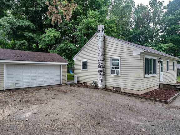 Cozy & cute country living with all the ease & convenience of the city! Enjoy the peace & quiet at this updated 2 bedroom, 1 bath ranch with unfinished basement nestled on just under half an acre with lots of mature trees offering shade & privacy. Located on a road with no outlet, the end of the street actually has a short path that connects to the Towpath Trail running through Eagle Marsh Nature Preserve—excellent for outdoor activities, walking, biking & strolling in the fresh air. Long gravel driveway leads back to a detached 2 car garage with additional parking along drive. Home has been well maintained from outside in with a newer roof & tidy flowerbeds ready for summer planting. Inside the front door you’ll find a bright & welcoming atmosphere with a sizable main living room with ceiling fan. Eat-in kitchen has everything you need with recessed lighting, plenty of cabinets & white wainscoting adding a touch of stylish character. Steps off kitchen lead down to small landing & door to back yard & more steps down to painted cement basement with utilities & laundry. It is big enough for mixed use, flex space or storage! Updated bathroom is very trendy with newer wood flooring, tub/shower combo & modern vanity with hard surface counter. Both bedrooms are comfortably sized with ceiling fans, though one is larger as this used to be a 3 bedroom house originally. Back yard feels extra private as it backs up to a 6’ privacy fence with many tall trees around. All kinds of room of outdoor activities & fun. There’s even a little cement patio linking back door & side garage door where you can kick back & relax in the shade. Only minutes from I-69, W Jefferson Blvd, Lutheran Hospital, Village at Coventry & Covington Plaza for easy access to local amenities, shopping, dining & groceries. Built to last in 1954, this home is solid & sturdy & waiting for you to make it a home! Finish out the summer strong from the comfort of your new abode—reach out today!