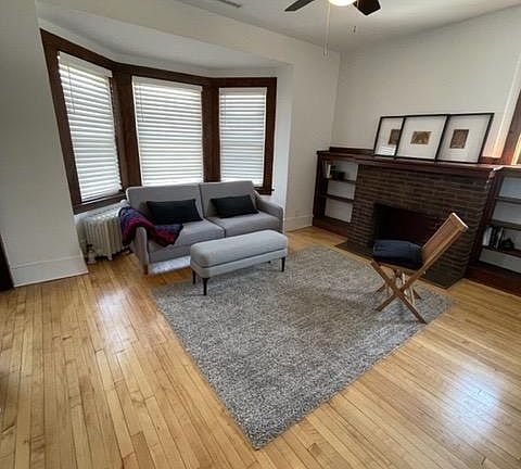 Heat included in the rent, Central Air Conditioning!! Awesome, totally renovated 3 bedroom apartment, features many lovely details--high ceilings, sunny and spacious--refinished Pocket doors, deep baseboards, hardwood floors throughout, refinished, original woodwork, built in hutch in dining room and a decorative fireplace with oak mantle and flanking bookcases. Updated features include recessed lights, finished closets, chefs kitchen with SS dishwasher, disposal, quartz counters and under cabinet lighting. Also has small, private outdoor space off kitchen. Super location, in heart of Beloit's historic downtown, steps from the river, college, restaurants and shops. Secured basement storage, Laundry and fitness room on premises. 12 month lease