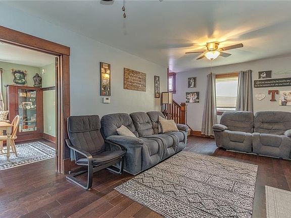 MUST SEE! 2 Story 3 Bedroom 1 Bath home located in the heart of Patterson. Lovely front porch for relaxing and INCREDIBLE rear yard! Table top flat yard, pavers create designated sitting area and 6 foot privacy fence which has been freshly treated. Yard is very private. Detached 1 car garage with automatic door opener and long driveway, offer off street parking options. Nice sized living room with decorative fireplace flanked by custom windows. Dining room is so charming with french doors, custom built-ins with seating bench. Living and dining room have new flooring. Kitchen offers lots of cabinetry, dishwasher, gas stove and double door fridge. Retreat upstairs to 3 nice sized bedrooms and a full bath with a jetted tub with adorable shutters on windows for privacy, and stand alone shower. Basement offers a partially finished area for living space, laundry area, and a storage room, as well as access to outside. So Much To Love about this home! Conveniently location.