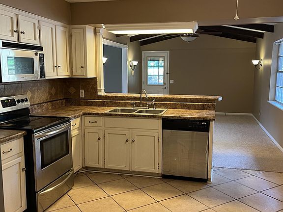 Brick ranch style home, with shaded backyard and screened-in back porch. Large den/kitchen combo with stove, refrigerator, dishwasher, microwave, washer/dryer hookups. Central HVAC, ceiling fans. Single carport with storage. Zoned R-1 Single Family or no more than TWO (2) unrelated people.