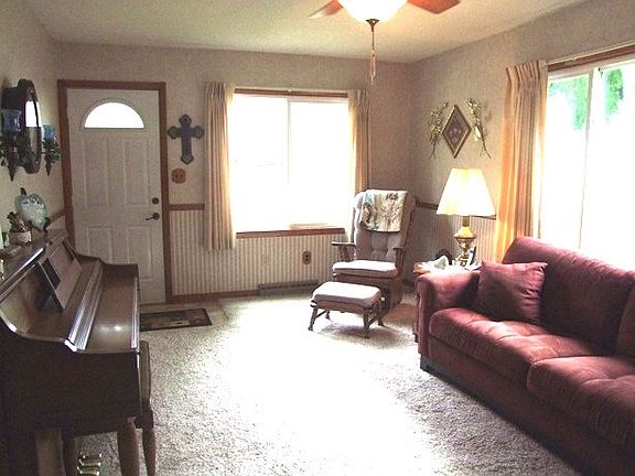 Immaculate 2 bedroom home in a small town setting. Stove, Refrigerator, washer& dryer all included! Enjoy your morning coffee on the beautiful deck. Full basement, like new siding, windows, doors and shingles.