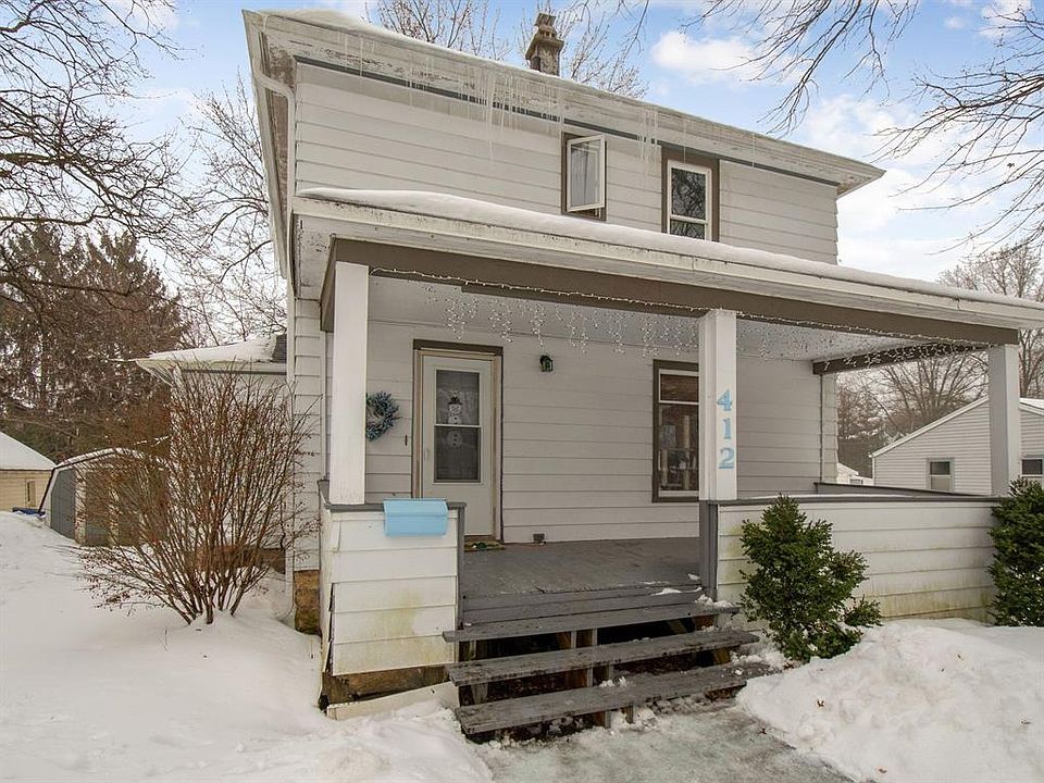 Great location, great price, in beautiful Mt Vernon. Sit and relax on your large covered front porch, perfect for your porch swing Step inside the 2 story entry with original staircase, hardwood floors, tall ceilings, & beautiful glass doors. This home has a nice open floor plan from dining room to living room. The kitchen is large with tons of counter space, and a beautiful barn board walled eating area amazing views of the large lot & mature trees. Sliders lead out to a extra large deck & fenced back yard. Main floor boasts a french door den & laundry There is a half bath to complete this level. Upstairs has three bedrooms, and all with their own character, including a large bedroom an attached finished lounge room. This home is walking distance to two local parks, sledding hill, and City pool. Located just 20 minutes to Cedar Rapids and 30 to Iowa City its centrally located and waiting for your personal touch.