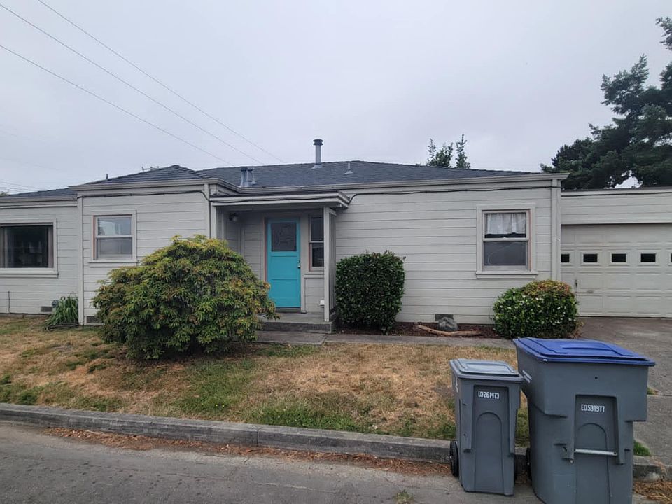 Newly renovated! Remodeled kitchen and bathroom, brand new countertops, sinks, shower, and flooring. New furnace, new refrigerator (plus another refrigerator in the garage). Hardwood floors, attached garage, laundry room with washer and dryer. Large, fenced garden with a garden shed/artist studio. In town, very short walk to stores and the plaza.